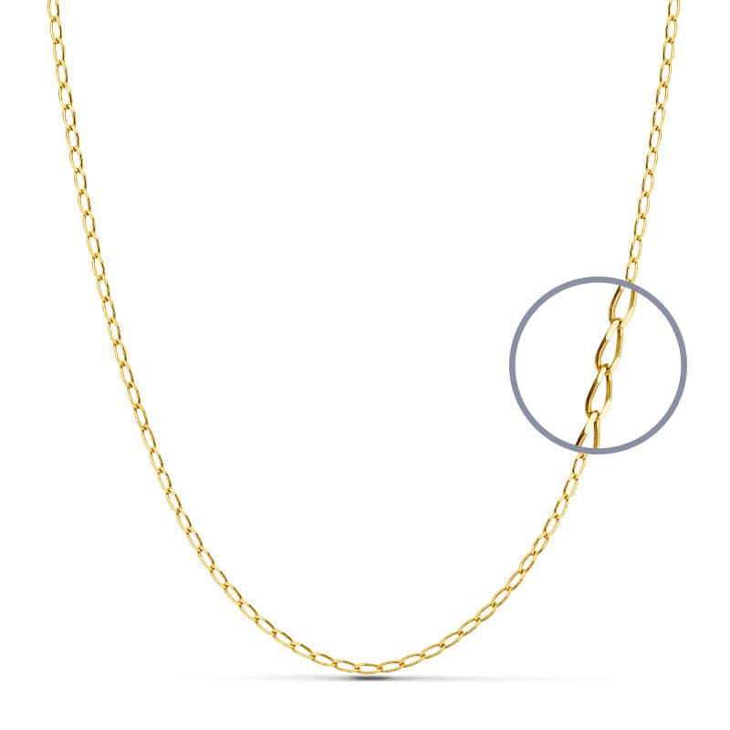 Con opciones en diversos acabados y longitudes, cada cadena es una pieza esencial que destaca tanto sola como acompañada de tu colgante favorito. Ideales para añadir un toque de sofisticación a cualquier ocasión, nuestras cadenas combinan estilo y calidad para acompañarte en cada momento.